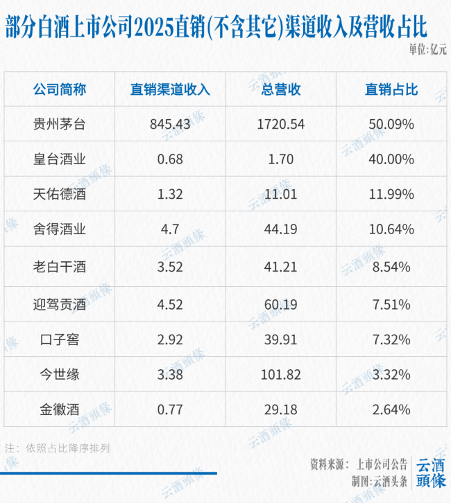 值得注意的是,除茅台外,绝大多数白酒上市企业的直销收入占公司总营收比重仍然较低,多数不足10%,收入基本盘仍高度依赖传统经销网络。
