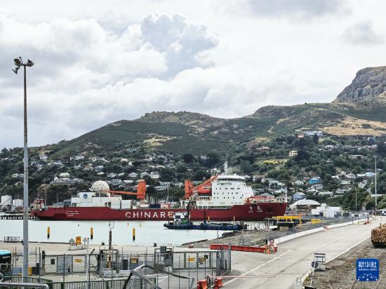 1月14日,“雪龙”号停靠在新西兰克赖斯特彻奇市利特尔顿港。新华社记者 顾天成 摄
