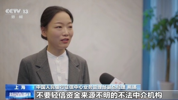 中国人民银行征信中心业务管理部副总经理 熊瑛:如果遇到暂时的资金困难,可以主动联系贷款机构,按照市场化、法治化的原则,合理地商定解决方案,不要轻信资金来源不明的不法中介机构,避免掉入更大的债务陷阱,甚至卷入到骗贷这类违法案件中去。