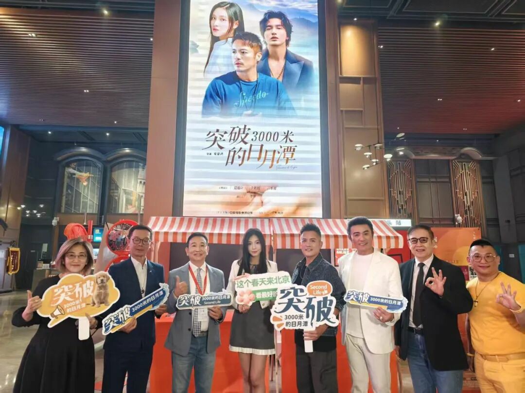 4月21日,台湾电影《突破3000米的日月潭》亮相第十六届北京国际电影节首映单元。图为主创团队合影。其中右三为台湾演员李罗,右五为其女儿李紫嫣。(片方供图)